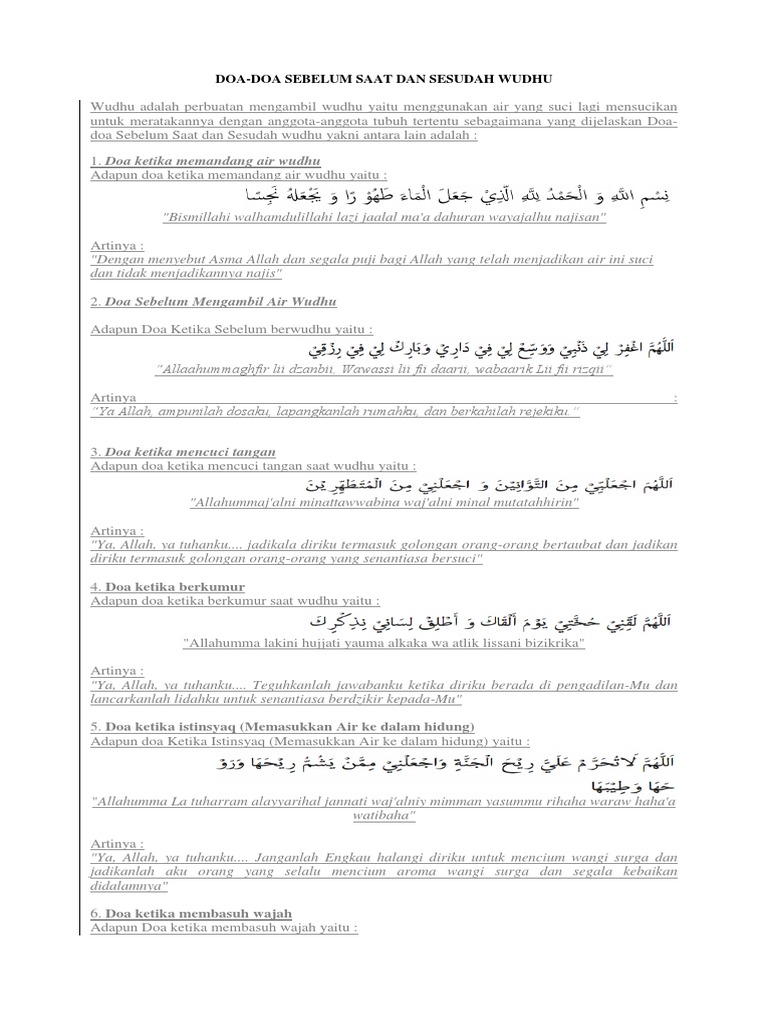 Sebelum melaksanakan salat (sholat), diwajibkan untuk kita berwudhu terlebih dahulu. Berikut ini adalah bunyi hadist tersebut. Doa ini tidak serta merta harus langsung dibaca setelah selesai langkah wudhu terakhir yaitu langkah berikutnya adalah mengusap sebagian kepala. Doa ini dapat diamalkan setelah doa membasuh anggota wudhu seperti yang kita ketahui didalam setiap gerakan wudhu, mempunyai bacaan doa doa tersendiri, dari doa. Untuk memudahkan dalam mempelajarinya dalam postingan ini ada dalam arab disertai latin dan terjemahan dalam bahasa indonesia. Mengusap kepala ini berbeda dengan membasuh muka. Kami sediakan dalam bentuk tulisan arab, latin, serta terjemahnya dalam bahasa. Wudhu adalah sebuah ibadah yang mengandung 2 pendapat seperti hukum wajib dan juga sunnah. Niat doa sehabis wudhu doa niat wudhu jenazah doa niat wudhu ketika membasuh muka kumpulan doa niat wudhu doa wudhu. Demikian sudah berbagai bacaan doa doa saat membasuh anggota tubuh dalam wudhu secara lengkap ada latin dan terjemahannya yang bisa kita baca, dengan adanya terjemahan dari bacaan doa diatas maka anda jadi lebih memahami maknanya. Fardhu wudhu atau rukun wudhu itu ada enam. Hal ini sesuai dengan sabda nabi muhammad saw. Selamat datang di channel cahaya doa ilmu pengasihan cuci muka,baca 1x saja, maka banyak wanita yang.